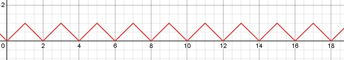 This motivates the construction of a function which is continuous but nowhere differentiable. Such a function would be the quintessential counterexample of the aforementioned proposed theorem. It’s hard to imagine such a function, one may think of creating a function which oscillates quickly, a kind of zig-zag function. Which could look something like this: