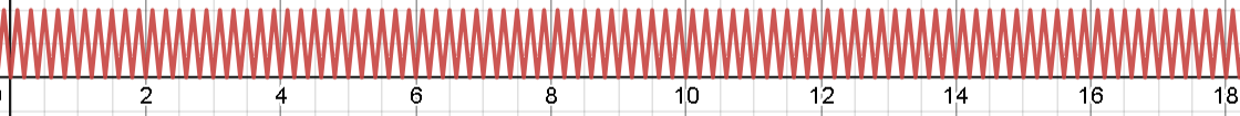 Hence it’s evident that for each such “zig-zag” there will be a point of non differentiability. Hence in our initial approach we have created a function which has infinite points of discontinuity. We could imagine that as the limit of the frequency value a reaches infinity, all points become points of non differentiability.